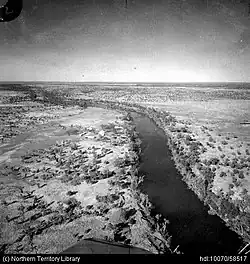By 1923 the size of the property was estimated at 13,100 square miles (33,929 km2) making it the largest property in the Northern Territory at the time.[13] In 1949 the Surveyor General of the Northern Territory, R. Miller, arrived to resume an area of 3,000 square miles (7,770 km2) from the eastern side of the property.[14] Parts of the property have since been carved up leaving an area of 12,000 square kilometres (4,633 sq mi).