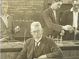 The forests surrounding Creswick had been thoroughly cut over during the gold mining era from the 1850s until around 1900. The forester John La Gerche[11] was placed in charge of the forest land around Creswick in the late 1880s. He established a State nursery at nearby Sawpit Gully in 1888 to aid the revegetation of the forests around Creswick. Land rehabilitation and the need to create softwood resources meant that some of the first plantations of radiata pine were established around 1900 and became part of the school demonstration forest.[12] In the early years, practical training was completed under the direction of John Johnstone, Superintendent of State Plantations. Johnstone was born in Scotland in 1858 and served his gardening and forestry apprenticeship at Gordon Castle, and after getting married decided to emigrate to Victoria. He worked to establish Maddingley Park at Bacchus Marsh before being recruited to the Forests Department in 1898 by George Samuel Perrin. The School lacked trained foresters to teach specialised coursework,[13] so teachers were recruited from the nearby Ballarat School of Mines[14] who focussed solely on basic sciences. Mr Thomas Stephan Hart,[15] formerly Professor of Geology and Mining, was appointed Senior Master in May 1913.[16] The academic standard of the course was ensured by a Board of Examiners headed by the Professor of Botany at Melbourne University, Professor Alfred James Ewart (1872–1937).[1]