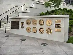 features a rectangular fountain basin and stone wall inscribed with the names of those who died during the Vietnam War. According to the Smithsonian Institution, which surveyed the monument as part of its "Save Outdoor Sculpture!" program: "This memorial is dedicated to veterans from all branches of the armed services who served in Vietnam. It replaces the former Vietnam Memorial located on Wacker Drive that was dedicated on November 11, 1982. The inscribed stones from that memorial have been incorporated into the plaza of this memorial."[1]