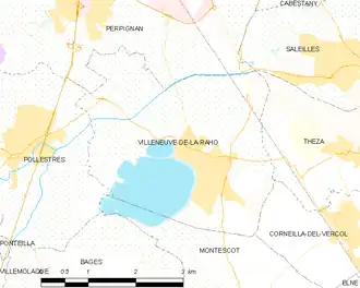 Villeneuve-de-la-Raho is located in the canton of La Plaine d'Illibéris and in the arrondissement of Perpignan. The town is the location of Lac de Villeneuve-de-la-Raho.