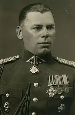 ![]() Žilys photographed with uniform of the Lithuanian Army and state orders in the 1930s | |