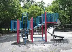 The park covers an area of 3.5 acres (1.4 hectares) in the Riverdale neighborhood of The Bronx in New York City. It includes bathrooms and a playground with a spray shower and is wheelchair-accessible. The park incorporates the Sid Augarten baseball field.[1] The park includes a woodland area with native trees, primarily red and white oak, black cherry, and sweetgum. Other species include Norway maple, black locust, American elm, pignut hickory, and redtwig dogwood.[2] The park is adjacent to Bronx Public School 81 and bordered by Riverdale and Mosholu avenues and West 254th and 256th streets.[3][1]