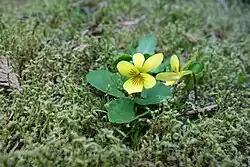 Viola orbiculata, the darkwoods violet or western roundleaf violet, is a species of flowering plant in the family Violaceae, native to the Pacific Northwest.[1] A perennial reaching 7.5 cm (3 in), it has yellow flowers with purple markings.[2]