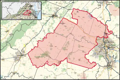 The district overlaps with Virginia's 1st, 4th, and 5th congressional districts, and with the 27th, 65th, 66th, 68th, 69th, and 71st districts of the Virginia House of Delegates.[4]