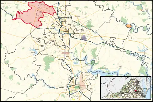 Virginia's 57th House of Delegates district elects one of 100 seats in the Virginia House of Delegates, the lower house of the state's bicameral legislature. District 57, consisting of parts of Charlottesville and Albemarle County, has been represented by Sally Hudson since 2020, and previously by David Toscano from 2006 to 2020, following the 2005 election in which he defeated Thomas W. McCrystal after the retirement of Mitchell Van Yahres.[1] Following the redistricting after the 2020 Census, the district was moved to include areas of Goochland County and Henrico County. In the 2023 Virginia House of Delegates election, Republican David Owen narrowly won the seat over his Democratic opponent.[2]