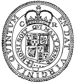 Seal of Virginia following the Restoration of King Charles II in 1660