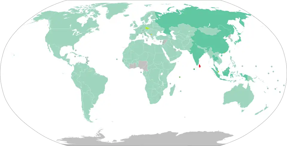 Citizens of the following countries must present a yellow fever vaccination certificate upon arrival in order to enter Sri Lanka:[19]