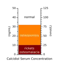 - ^ Chel V, Wijnhoven HA, Smit JH, Ooms M, Lips P (2008). "Efficacy of different doses and time intervals of oral vitamin D supplementation with or without calcium in elderly nursing home residents". Osteoporos. Int. 19 (5): 663–671. doi:10.1007/s00198-007-0465-2. PMC 2277446. PMID 17874029.