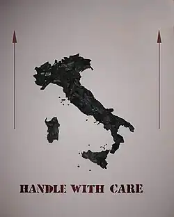 In May 2014 he exhibited "Superfetazioni" at the Capitoline Museums in the Centrale Montemartini in Rome.[9] His work "Fragile" was shown at the Maam Museum in Rome.[10] In May 2015 he exhibited a solo show with the provocative title L’Italia brucia (Italy is burning) at the Sant’Andrea Gallery in Rome and then he executed a performance for Exploit in Milan. In the same year he intervened with an installation at the Cà Pesaro Museum in Venice on the occasion of the Venice Biennale.