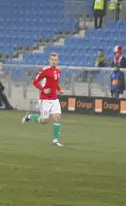 Koman playing for Hungary against Poland in Poznań in 2011.