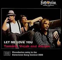 "Vo ime na ljubovta" (Macedonian: Во име на љубовта; "In the name of love") is a song by Tamara Todevska, Vrčak and Adrian Gaxha, who competed with it at Skopje Fest 2008. The song won, having been awarded the most televotes by the general public and the 7-member expert jury, and an English-language version ("Let Me Love You") represented Macedonia[1] at the Eurovision Song Contest 2008 in Belgrade, Serbia, on 22 May 2008.