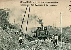 Lines were generally narrow gauge, varying from 600 mm (1 ft 11+5⁄8 in) (Calvados network) to 1,000 mm (3 ft 3+3⁄8 in) as was more common. There were instances where standard gauge of 1,435 mm (4 ft 8+1⁄2 in) was adopted, often to facilitate the transfer of through traffic to main line railways, such as on the Montérolier-Buchy - Saint-Saëns line in Seine-Inférieure.[8]