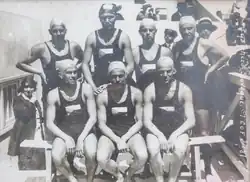 ![]() Czechoslovak water polo team at the 1924 Olympics. Vojtech Neményi standing 3rd from left. | |