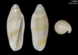 Shell of Volvarina veintimilliae (holotype in the MNHN, Paris)