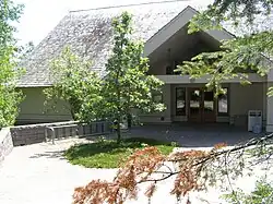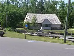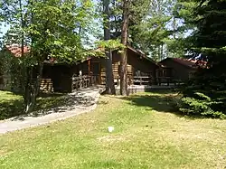 The Ingersoll lodge was built by Illinois philanthropist William Ingersoll in 1928. The estate was visible from the lake just north of Harrison Narrows;[29] however, the lodge collapsed in 2014 due to a combination of structural weakness, incomplete maintenance, and heavy weather. The lodge site was subsequently cleared and the lodge's remains were put in storage for a possible rebuilding.[30]