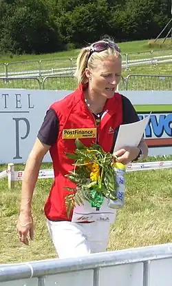 König-Salmi won the 2001 Sprint distance World Orienteering Championships,[2][3] and is two times Relay World Champion, from 2003[4] and 2005,[5] as member of the Swiss winning teams. Also an individual bronze medal from 2005 (Long distance),[5] and Relay bronze medals from 1997[6] and 2006.[7] Married to Finnish orienteer Janne Salmi.
