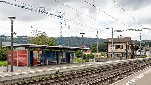 Würenlos is a railway station in the municipality of Würenlos in the Swiss canton of Aargau.[2] The station is located on the Furttal line,[3] within fare zone 572 of the A-Welle fare network (Tarifverbund A-Welle).[1] The station is served only by S-Bahn trains.