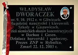 Władysław Dworaczek (9 September 1912 in Gleiwitz (today Gliwice) (Sośnica) – 22 December 2003 in Rybnik) was a Polish educator and community organiser, as well as a political prisoner in the Nazi concentration camps.