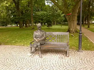 Seated sculpture of Sikorski as a young officer, Inowrocław, Poland