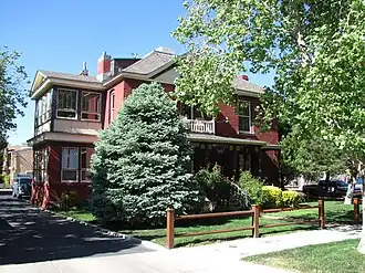 The W. E. Mauger House is a historic Queen Anne style home in Albuquerque, New Mexico. It was built around 1896 by Maude Goodlander and Martha Talbott, but is most closely associated with William and Brittania Mauger, who owned it from 1907 to 1932. Later, it was converted into a boarding house and remained in use as rental housing until the 1980s. Starting in 1985, the building was restored to its original appearance and has operated as a bed and breakfast since 1987. It is a 2 1/2 story brick house with a hip roof, asymmetrical front elevation with a large entrance porch, and a two-level sleeping porch on the west side. The house was added to the New Mexico State Register of Cultural Properties and the National Register of Historic Places in 1985 as "701 Roma NW".[2]