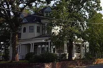The W.H. Moore House is a historic house at 906 Malvern Street in Hot Springs, Arkansas. It is a 2+12-story wood-frame house, with a hip roof, weatherboard siding, and a brick foundation. It has asymmetrical massing typical of the Queen Anne period, including projecting gables and window bays, a wraparound porch, and a corner turret. The porch details, however, are distinctively Colonial Revival, with heavier clustered posts supporting its roof. The house was built in the late 19th century for W.H. Moore, owner of the Valley Planing Mill, the city's only business of that type.[2]
