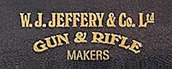W. J. Jeffery & Co. was founded by William Jackman Jeffery (1857–1909), who started his career in the gun trade in 1885 working in the front shop of Cogswell & Harrison. In 1887 Philip Webley appointed Jeffery manager of P. Webley & Son's London showroom at 60 Queen Victoria Street. Webley later abandoned their London operation and in 1890 Jeffery formed a partnership with a man by the name of Davies and Jeffery & Davies started trading from 60 Queen Victoria Street. This partnership was short lived and in 1891 the firm was renamed W. J. Jeffery & Co., still operating out of the Queen Victoria Street store. In addition to building new firearms, W. J. Jeffery & Co. was a trader in second hand firearms, by 1892 offering over 1000 for sale. In 1898 the firm opened a shop at 13 King Street, St James's, and by 1900 the company was a full-scale gunmaker with a workshop at 1 Rose and Crown Yard, near to the King Street shop.[1][2]