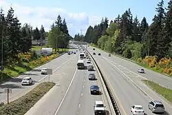 Every year, the Washington State Department of Transportation (WSDOT) conducts a series of surveys on its highways in the state to measure traffic volume. This is expressed in terms of annual average daily traffic (AADT), which is a measure of traffic volume for any average day of the year. In 2013, WSDOT calculated that the busiest section of SR 526 was its interchange with Evergreen Way, carrying 75,000 vehicles, while the least busiest section of the highway was its western terminus at SR 525, carrying 8,500 vehicles.[11] SR 526 is designated as part of the National Highway System for its whole length,[12] classifying it as important to the national economy, defense, and mobility.[13] WSDOT designates the entire route of SR 526 as a Highway of Statewide Significance,[14] which includes highways that connect major communities in the state of Washington.[15]