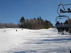 The resort features 27 trails, ranging in difficulty from easiest (green circle) to most difficult (black diamond). Amidst these trails is a terrain park and a racing venue. Two high-speed chairlifts (Minuteman and Polar Express) service the two main peaks, as well as a newer high-speed lift for the beginner area (Monadnock Express).[6] One additional 3-person chairlift (Vickery Bowl) services the mid-mountain area. Three magic carpets service the mountain's training slopes, with a third open only during weekends and holiday periods for ski school lessons for young children.