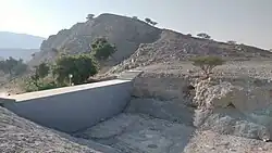 At the beginning of the lower course of the Wadi Nahela, at the point where the current channel of the wadi turns towards the northwest, a small dam was built in 1986, intended to feed underground water resources and reduce damage from possible floods, which receives the name of Wadi Nahela Breaker (Arabic: حاجز وادي نحيله).[18]
