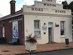 The Wagin Road Boards building was built in 1912 at a cost of £400.[13] The building housed the town library for many years before it moved to the former Town Hall in 2023.[14]