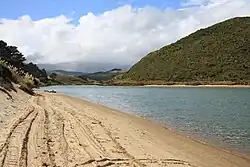 ![]() The Waimamaku River in April 2010, looking inland near its mouth. | |
