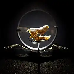 Of particular note are the almost complete skeletal remains of the North Island goose or tarepo (Cnemiornis gracilis),[14] the North Island takahē (Porphyrio mantelli)[15][16] and various small vertebrates, including frogs, skinks, geckos and bats.[17][18]