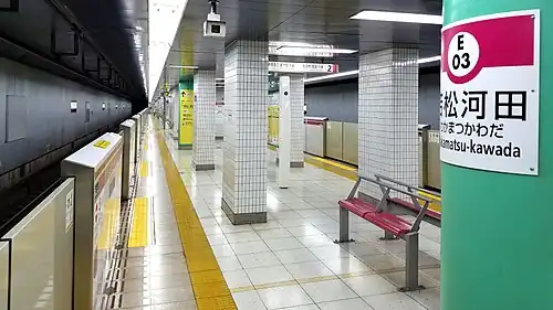 ![]() Platform at Wakamatsu-kawada | |||||||||||