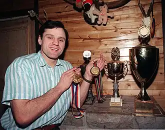 Waldemar Legień (born 28 August 1963) is a Polish retired judoka. He won two Olympic gold medals in different weight classes, in 1988 and 1992. He is also the first person to win back-to-back two Olympic gold medals in Judo.[2]