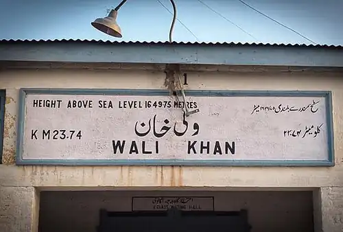 Wali Khan Railway Station (Urdu: ولی خان ریلوے اسٹیشن, Balochi: والی خان ریلوے اسٹیشن ) is located in Pakistan.[1]