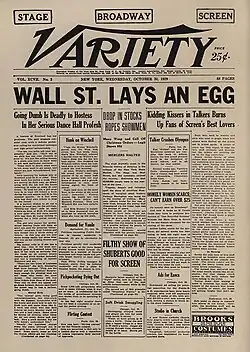 - ^ "Wall St. Lays an Egg". Variety. October 30, 1929.
