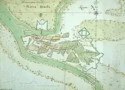 The Kaunas city wall (Lithuanian: Kauno miesto gynybinė siena) was a masonry defensive wall in Kaunas, an important city of the Grand Duchy of Lithuania.[1][2][3][4] Its construction began in the early 17th century as a result of Kaunas' prosperity and medieval city's standards, however it was unfinished due to later wars and economic reasons.[1]