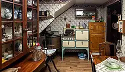 An early 20th-century kitchen, one of the displays in the basement