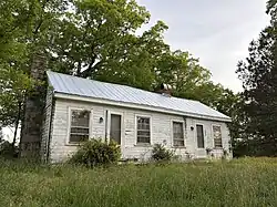 Frog Pond Academy was the name given to the small plantation school by the children who studied there, in honor of the multitude of frogs that are said to have inhabited the puddles around the school after a heavy rain.[3] Located a few hundred yards west of Oaky Grove Methodist Church and immediately south of the Mial-Williamson Farm house, the school consists of two rooms, each with its own front door, with a large granite chimney anchoring the east end of the structure. Alonzo T. Mial built the school in the 1860s for his own children, as well as others in the surrounding community, but it is unknown for how long the school was actually in use. With the exception of a twelve-year period during which it served as an office for the North Carolina Agricultural Experiment Station, the schoolhouse has been used as a tenant dwelling for most of the past century.