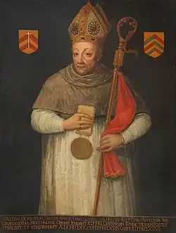 ![]() Wilhelm Sonmans's fictitious portrait of Walter de Merton, c. 1670 | |