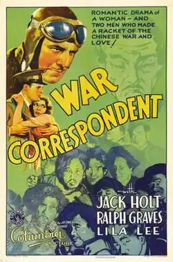 War Correspondent is a 1932 American drama film directed by Paul Sloane.[1] The film stars Jack Holt, Ralph Graves and Lila Lee.[2] Although set in war-torn China, War Correspondent was entirely shot in California.[3]
