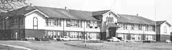 A bird's eye view of the mill in the 1950s. Katherine Hall is seen just behind the mill.