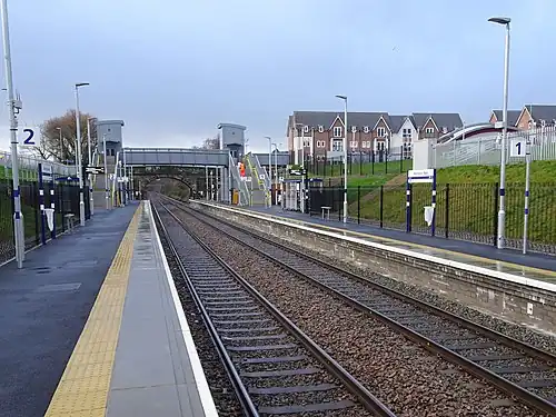 Warrington Borough Council applied for funding from the Government's New Stations Fund but the bid failed.[2] However, the council secured part of the funding through other sources and a planning application was approved in 2015, and it was hoped that construction could begin in 2016, until Network Rail increased the estimated cost by £4 million. A fresh bid to the New Stations Fund was successful, and the station opened on 16 December 2019.[3][4]