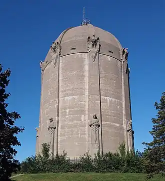 The original tower was built in 1893 by Cadwallader and William Washburn to supply water for the Memorial Orphan Asylum.[2] Water was pumped from the Minnehaha Creek to the tower and then piped to the orphanage. The tower was purchased by the city of Minneapolis and connected to the city water supply in 1915. The current 110-foot-high water tower was built in 1931 by the City of Minneapolis in an Art Deco style.