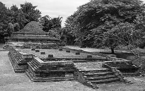 Wat That Khao (Thai: วัดธาตุขาว; "Temple of the White Reliquary") is a ruined temple in the Wiang Kum Kam archaeological site, south of Chiang Mai in northern Thailand, thought to have been built in the 16th or 17th century. Its chedi is presumed to have been formerly lime-plastered, hence the name. The temple faces northeast.