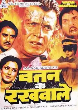 Watan Ke Rakhwale (transl. Saviours of the Nation) is a 1987 Indian Hindi-language action thriller film directed by T. Rama Rao. It features an ensemble cast of Ashok Kumar, Sunil Dutt, Dharmendra, Mithun Chakraborty, Sridevi, Moushumi Chatterjee, Prem Chopra, Kader Khan, Shakti Kapoor, Divya Rana and Dan Dhanoa. The film revolves around how a spy plots to bring a terrorist to justice, and how he is helped out by his lover, his elder brother and sister-in-law and a jailed convict.