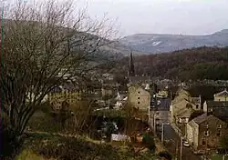 On the moorland above the village is a memorial to the dialect poet, Edwin Waugh, known as Waugh's Well. Since 1993 fell runners from the surrounding communities have gathered annually to run a four-mile circuit of the hills above the village, passing the well.