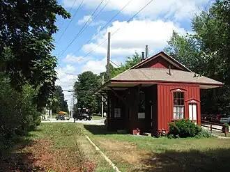 The historic district is centered at the junction of Routes 20 and 27, and extends north and south along Route 27 (Cochituate Road). It includes sixteen buildings, which are a mix of residential and civic buildings, and include two 19th-century barns. Most of these buildings are one or two stories in height, and of wood-frame construction; the current town hall is the only non-wood building. Most of them were built before 1850, and are either Federal or Greek Revival in style. The most notable exceptions are the 1881 train station, which helped transform Wayland into a commuter suburb of Boston, and the 1897 former post office building, which is Colonial Revival in style.[3]
