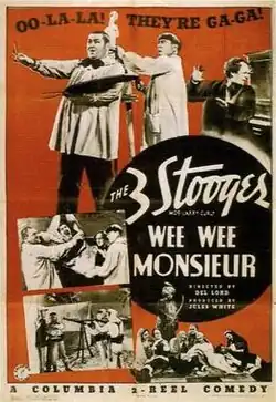 Wee Wee Monsieur is a 1938 short subject directed by Del Lord starring American slapstick comedy team The Three Stooges (Moe Howard, Larry Fine and Curly Howard). It is the 29th entry in the series released by Columbia Pictures starring the comedians, who released 190 shorts for the studio between 1934 and 1959.
