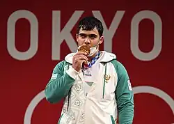 Akbar Djuraev – Uzbek weightlifter, Olympic and World Champion. Gold medalist of the men's 109 kg event at the 2020 Summer Olympics held in Tokyo, Japan. He also won the gold medal in the men's 109 kg event at the 2021 World Weightlifting Championships held in Tashkent, Uzbekistan.